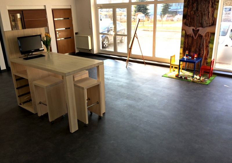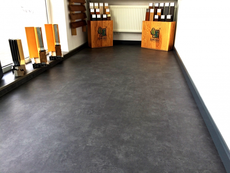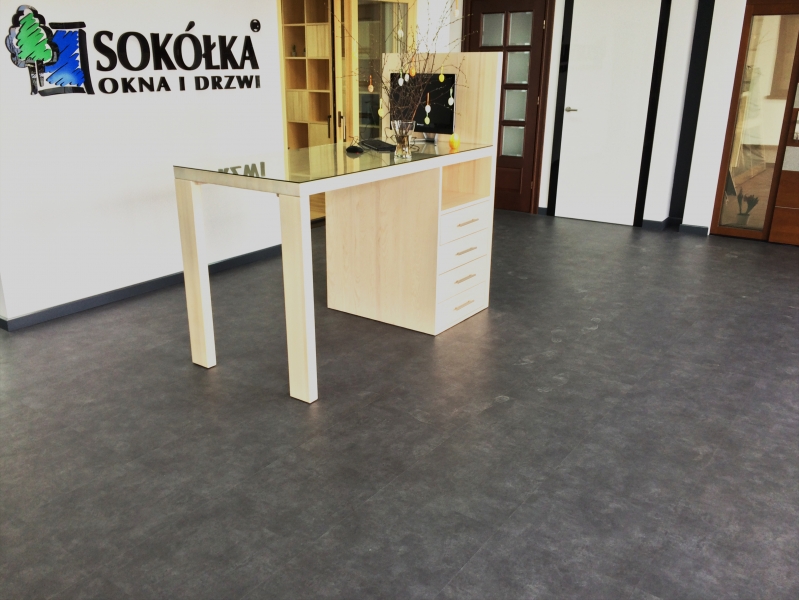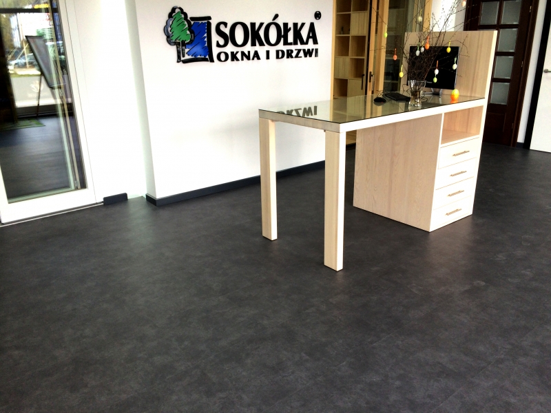Nasza ostatnia realizacja polegała na wykonaniu podłogi z płytek winylowych LVT w lokalu największego producenta stolarki drewnianej i okiennej na polskim rynku. Zamontowane zostały płytki LVT FORBO Allura Stone w ilości ok 80m2 które idealnie imitują kamienną podłogę.